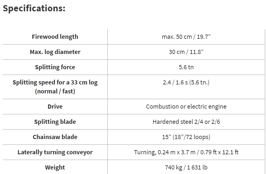 | Power supply | SM (7,5kW electric motor) or PM (combustion engine) or TRh (tractor hydraulics) |